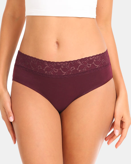 Cotton Lace Trim Panties - Solid Lp