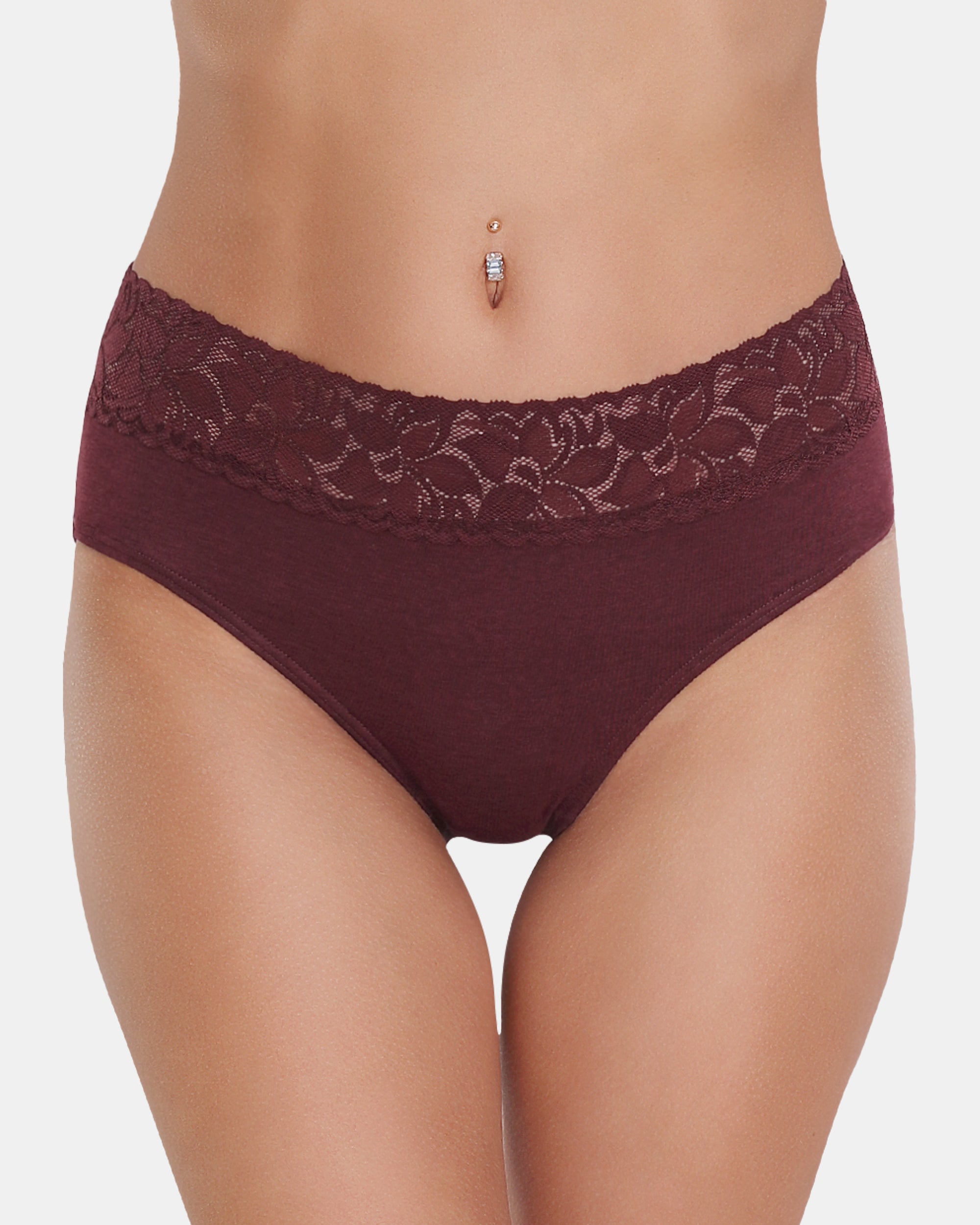 • 🍀 NO MUFFIN TOP PANTIES WITH LACE TRIM - Laser cut bikini panties features a high cut design , keep the maximum stretch of the spandex panties.Use large spandex and wide lace waistband, No muffin top,No ride up,No roll down