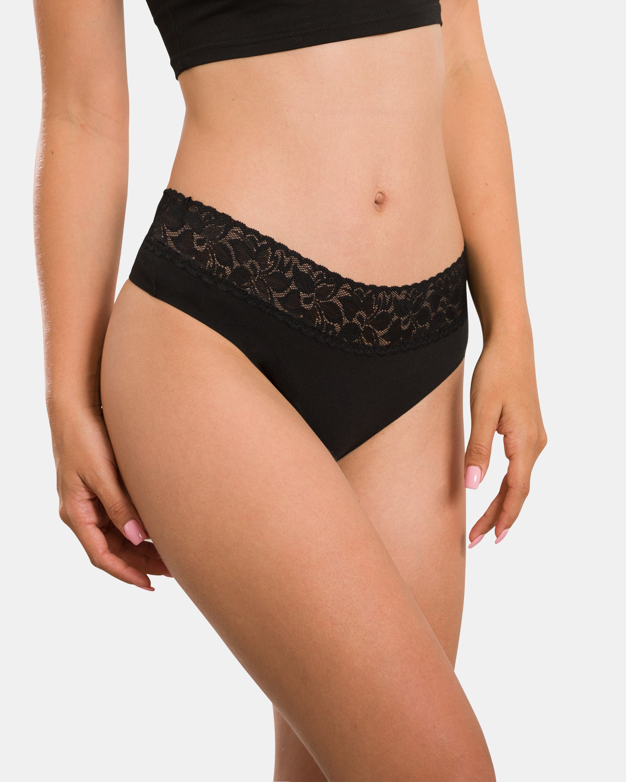 • NO MUFFIN TOP WITH LACE TRIM- Wide lace trim instead of traditional elastic band,laser cut cotton thong with a high cut design , keep the maximum stretch of the womens underwear thong, No muffin top,No ride up,No roll down. The crotch of these lace thong underwear are made with natural cotton fiber for healthy and breathable
