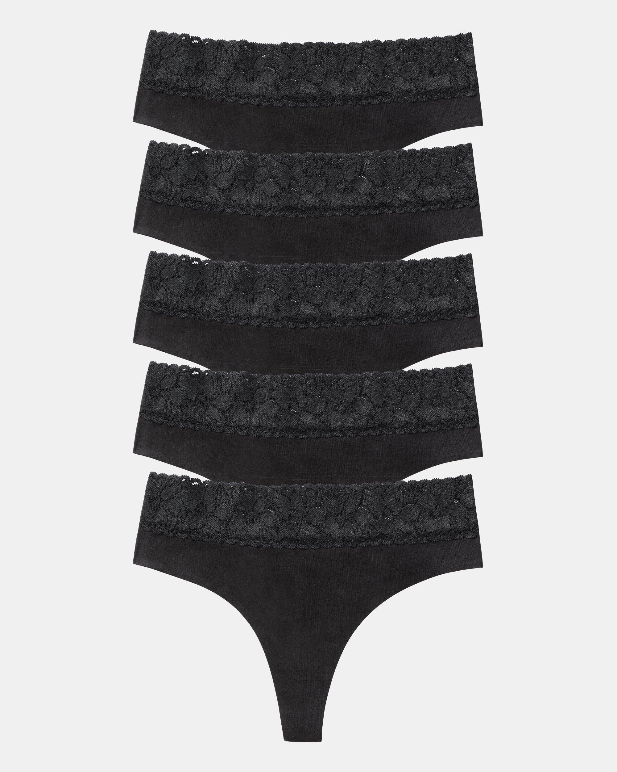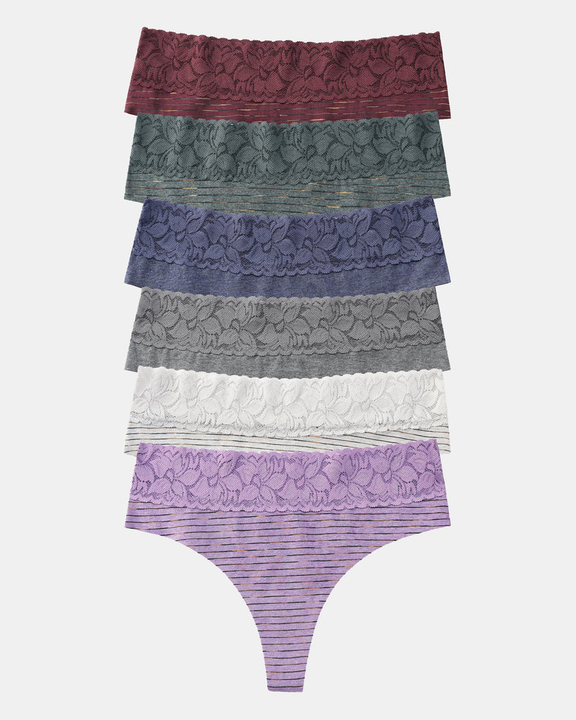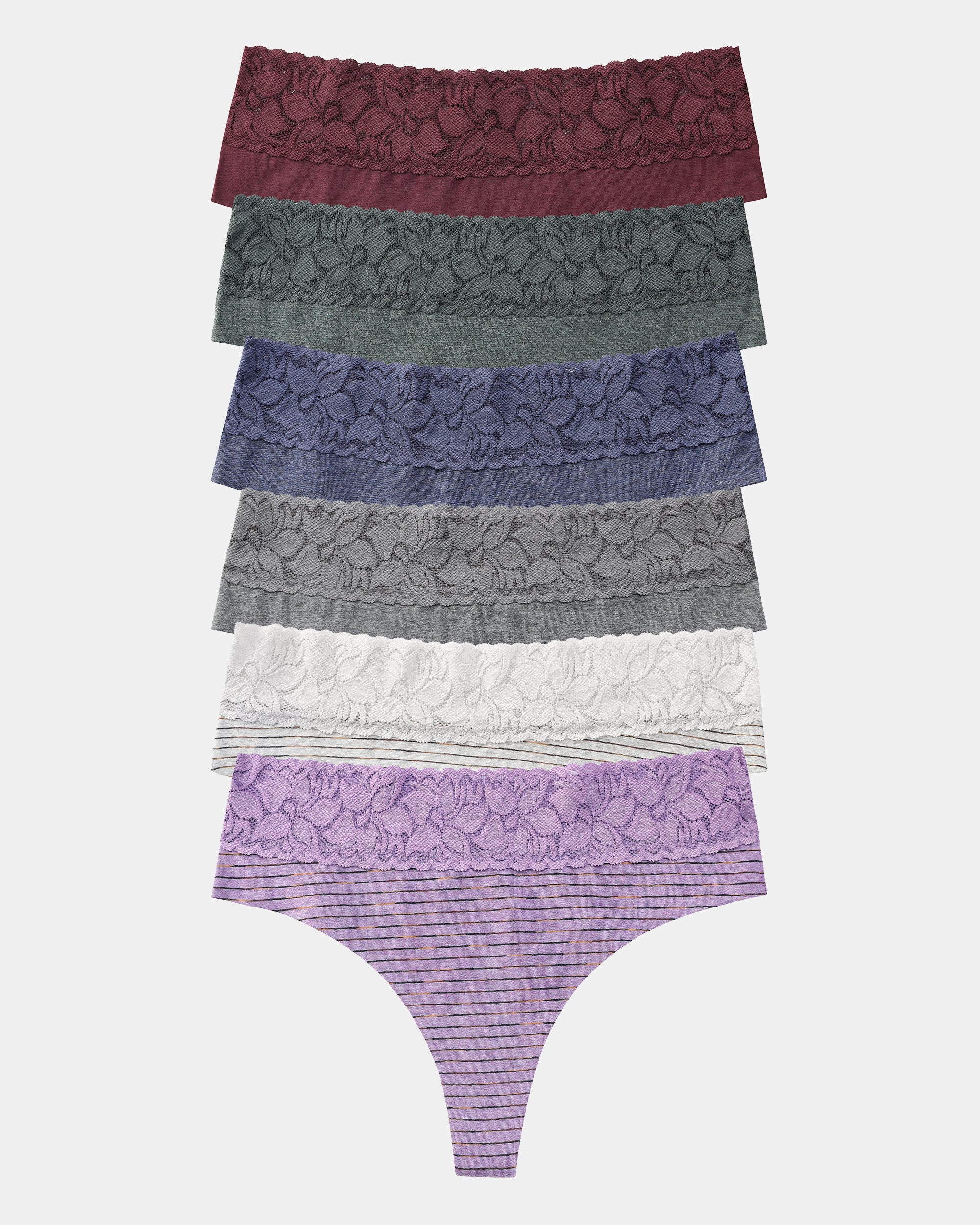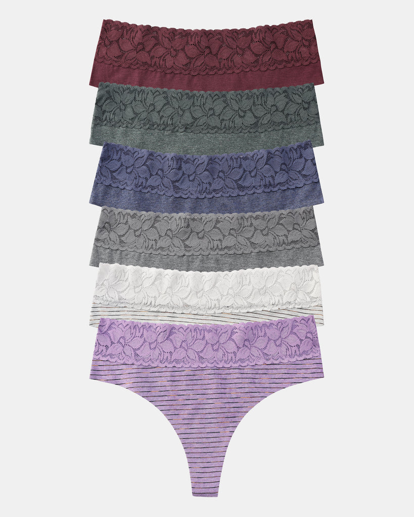 6-Piece Pack Seamless Lace Cotton Thongs for Women - ALTHEANRAY