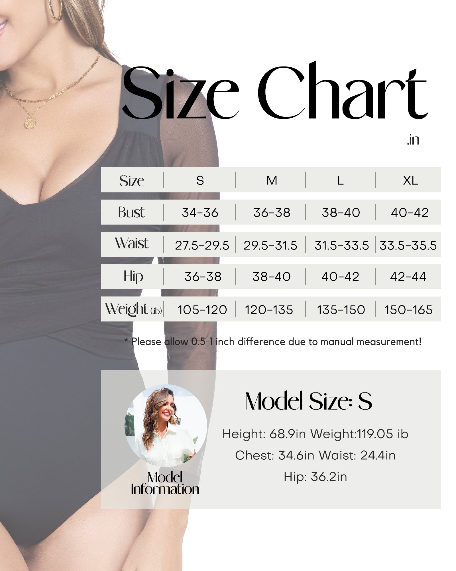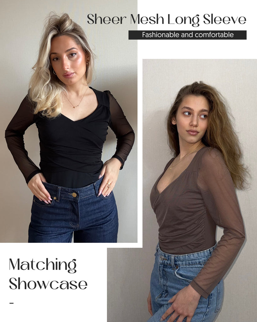 ALTHEANRAY Bodysuits for Womens Long Sleeve Sheer Mesh Ruched Body Suits V Neck Going Out Tops S-XL